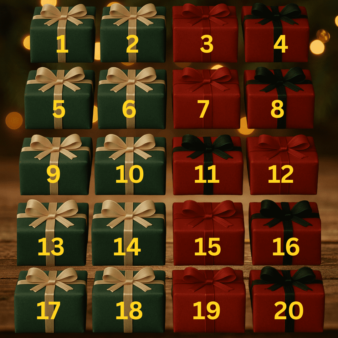 🎁 20 Presents to find — each one hiding a Naughty or Nice cash prize